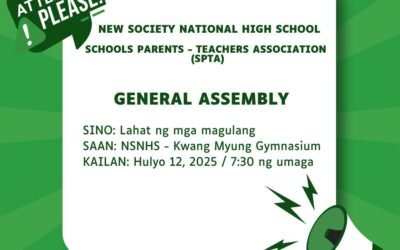 The SSLG officers of New Society National High School, together with the newly elected Grade 7 representatives and other student organization officers, took their oath of office during the School Parents-Teachers Association (SPTA) General Assembly. The ceremony highlighted the continuous commitment to student leadership and active involvement in school governance.